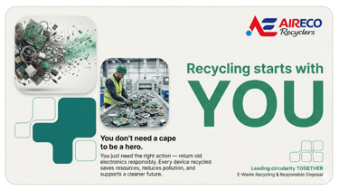 Aireco Recyclers Private Limited is an environmentally responsible recycling company focused on safe, compliant, and sustainable management of electronic waste. We help organizations and businesses handle end-of-life electronics the right way-through secure collection, ethical recycling, and maximum material recovery, so valuable resources return to the supply chain instead of ending up in landfills.